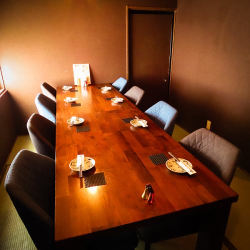 最大10名様まで利用可能な個室は、ご宴会からプライベート利用まで幅広いシーンでご利用いただけます♪落ち着きのある空間が特長で、ゆっくりと会話を楽しむことができるほか、大切な方との特別なひとときを演出することも可能です☆お客様の大切な時間を快適にお過ごしいただけるよう心を込めたサービスでお迎えいたします